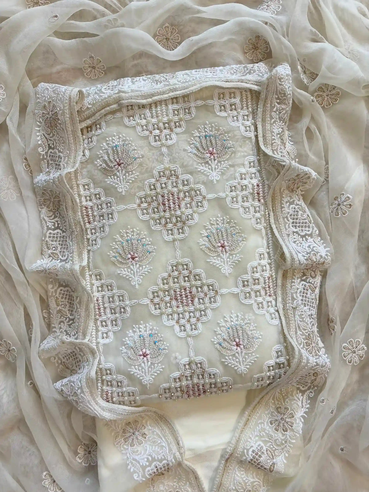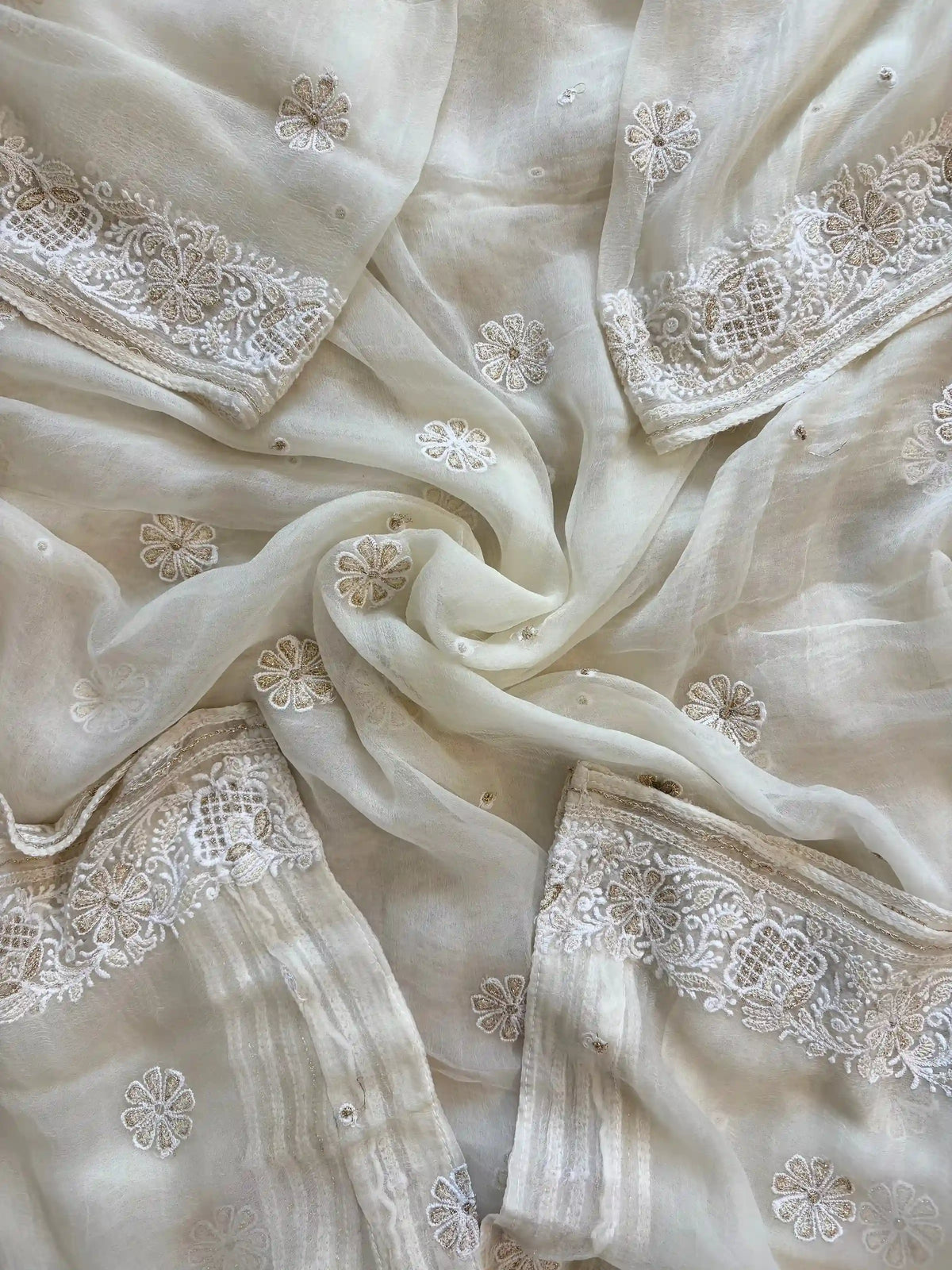 Work: Chikankari Embroidery with Beads, Sequins & Moti Highlights