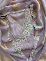 Tissue Weaved Dupatta  with hand embroidered borders with Nalki/pearls/Beads/Sippi/Cutdana highlighting.
