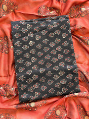 Celebrate the charm of handcrafted tradition with this Maheshwari silk unstitched suit, featuring a striking black kurta adorned with intricate floral hand block prints in earthy tones. The rich rust-colored dupatta, embellished with bold ethnic motifs, beautifully complements the subtle elegance of the kurta. Lightweight yet luxurious, this ensemble is perfect for festive gatherings, cultural events, or graceful evening outings, making it a timeless addition to your ethnic collection.