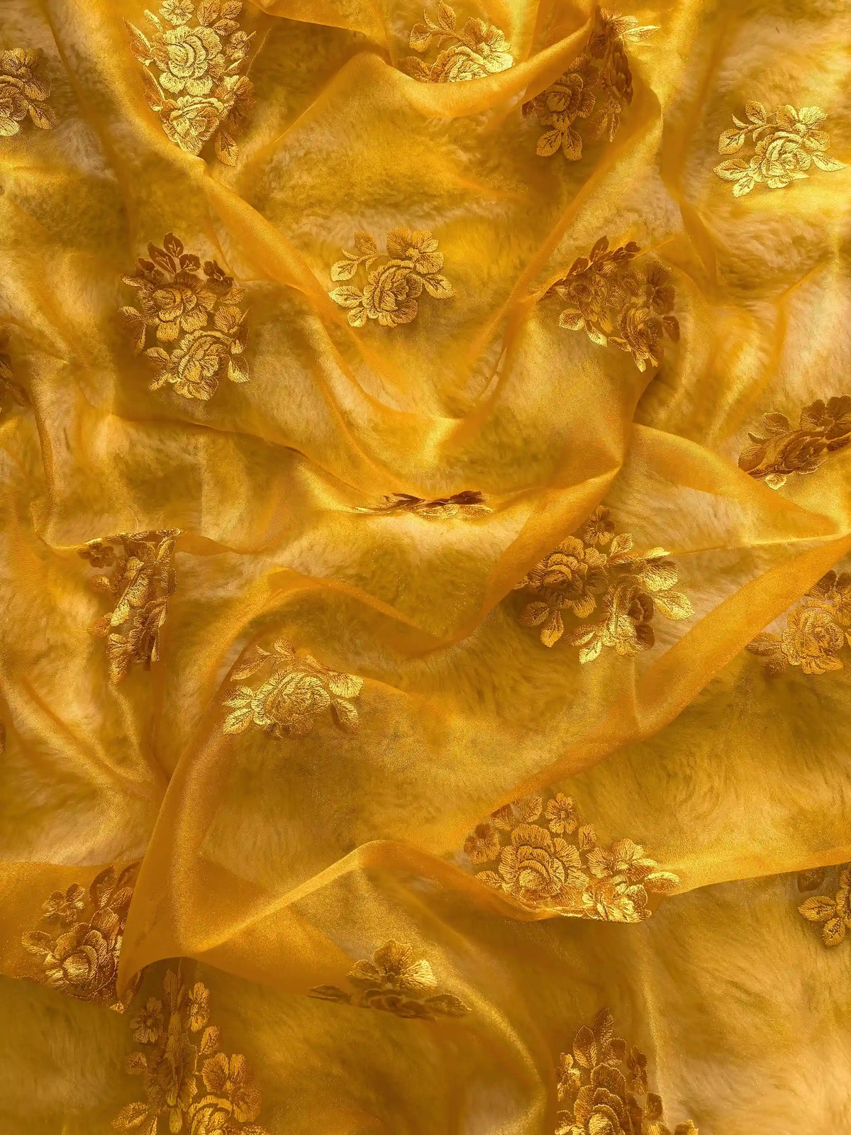 Pure glass tissue full size dupatta Vertical embroidery panels on both sides of the fabric