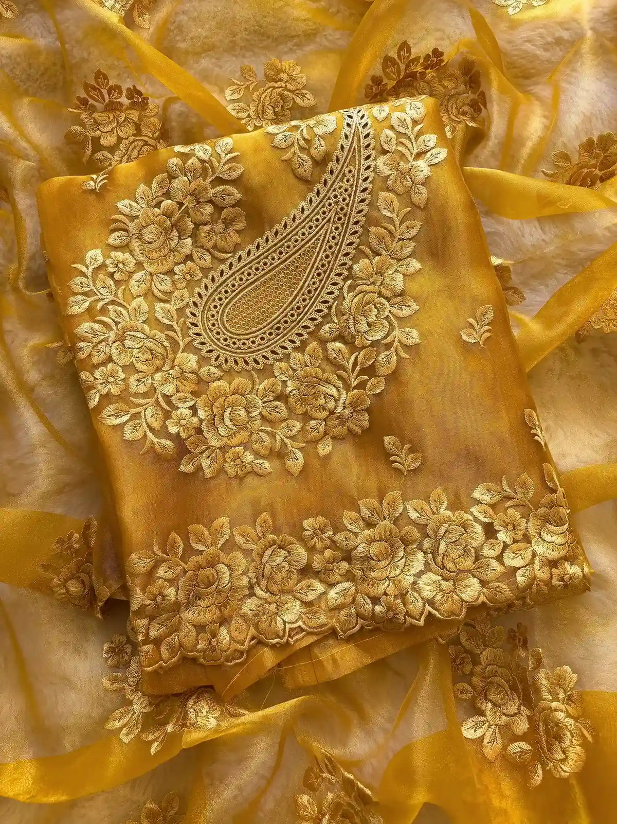 Glass tissue Designer Heavy floral thread embroidered Unstitched Suit