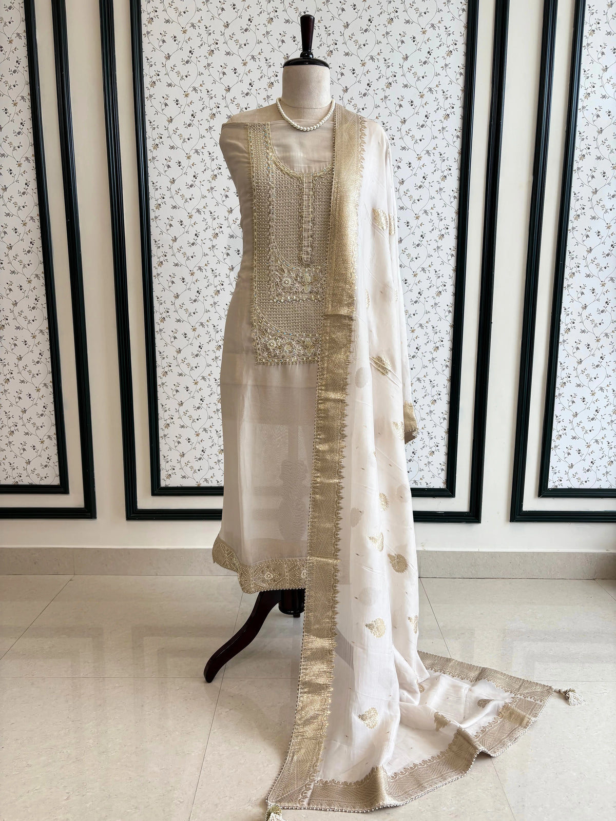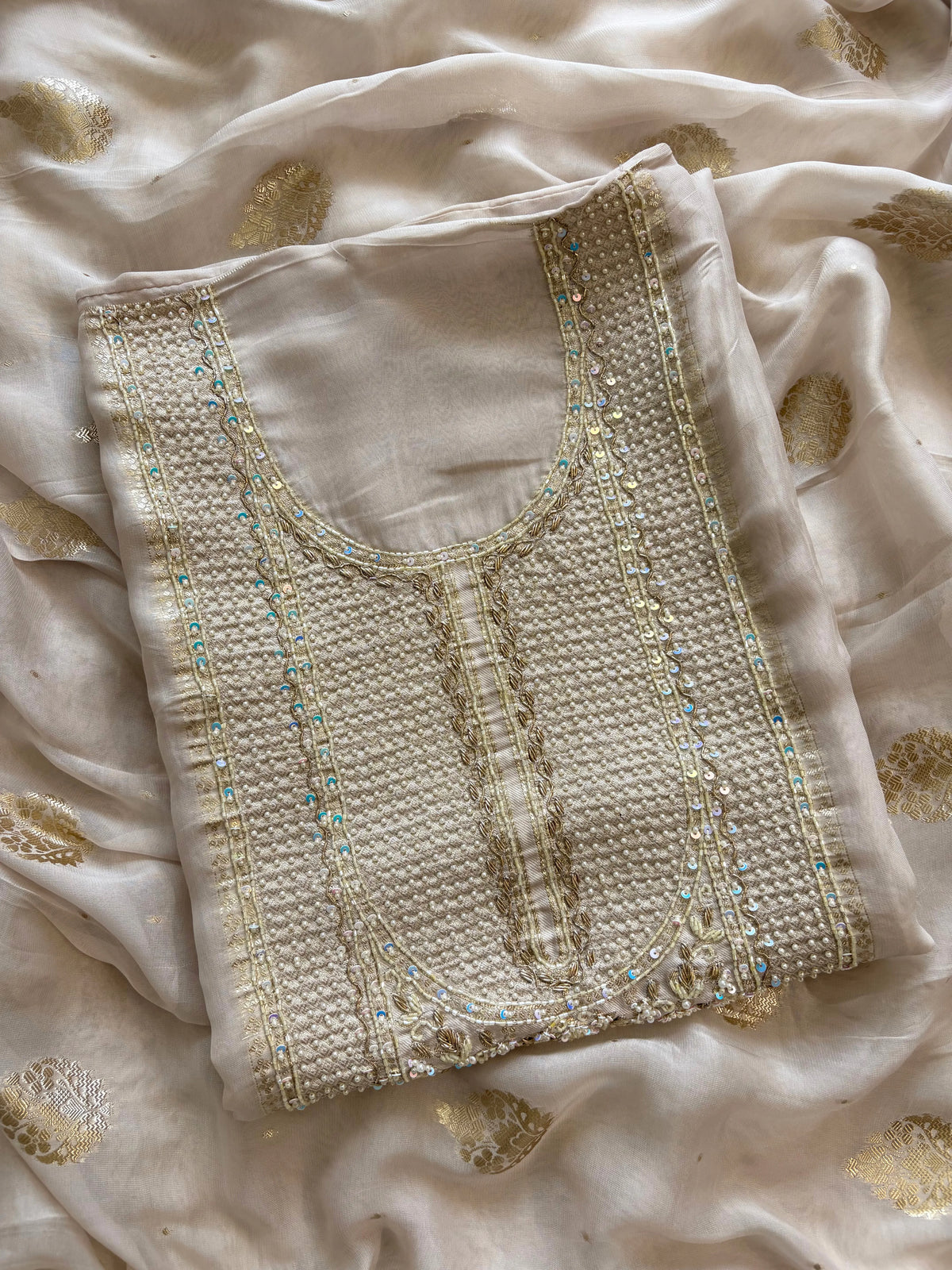 Pure Organza unstitched suit with heavy neck embellishements - The Zareesh