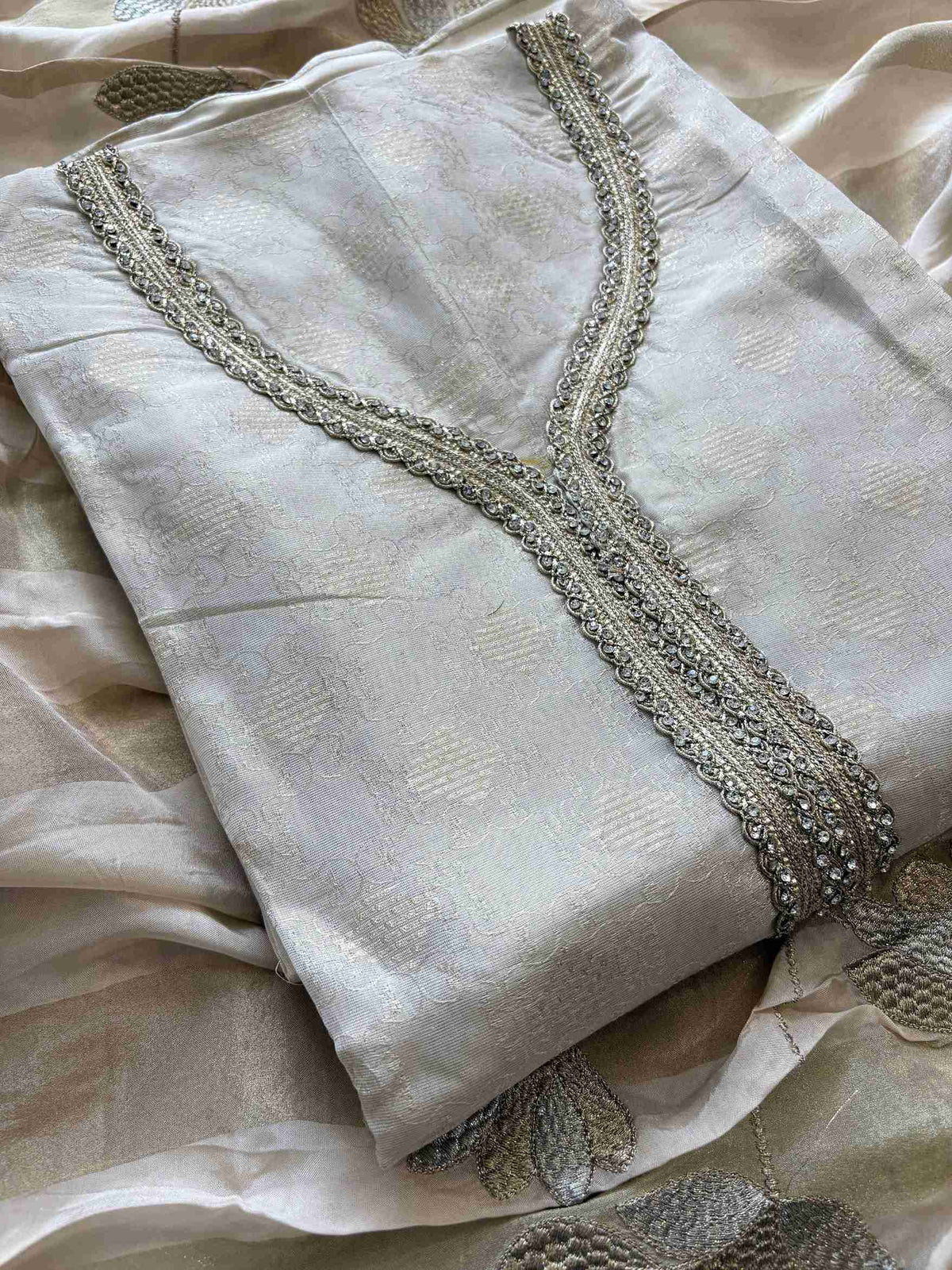 The shirt has small Banarsi bootie weavings , flower wines made of beautiful zardosi work.